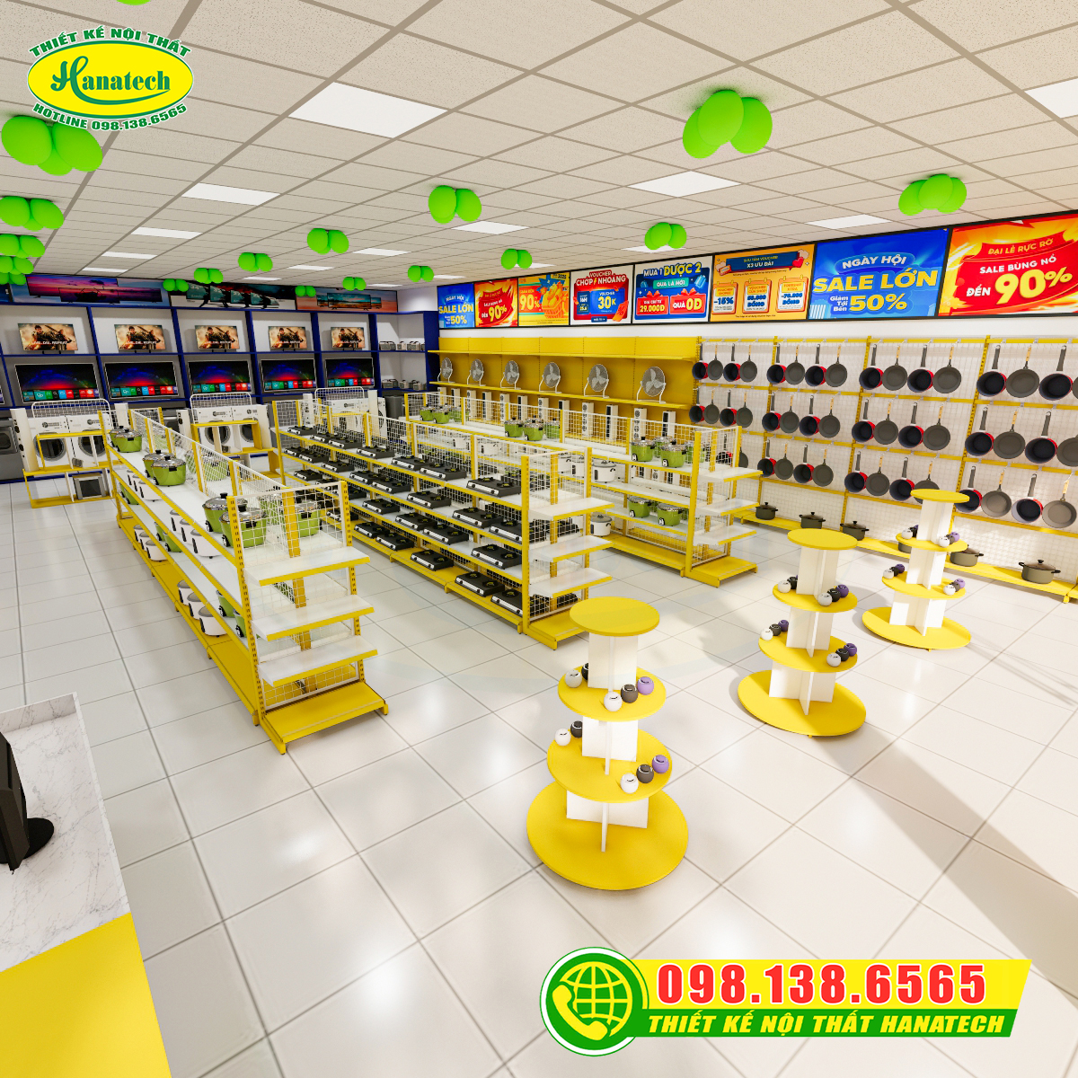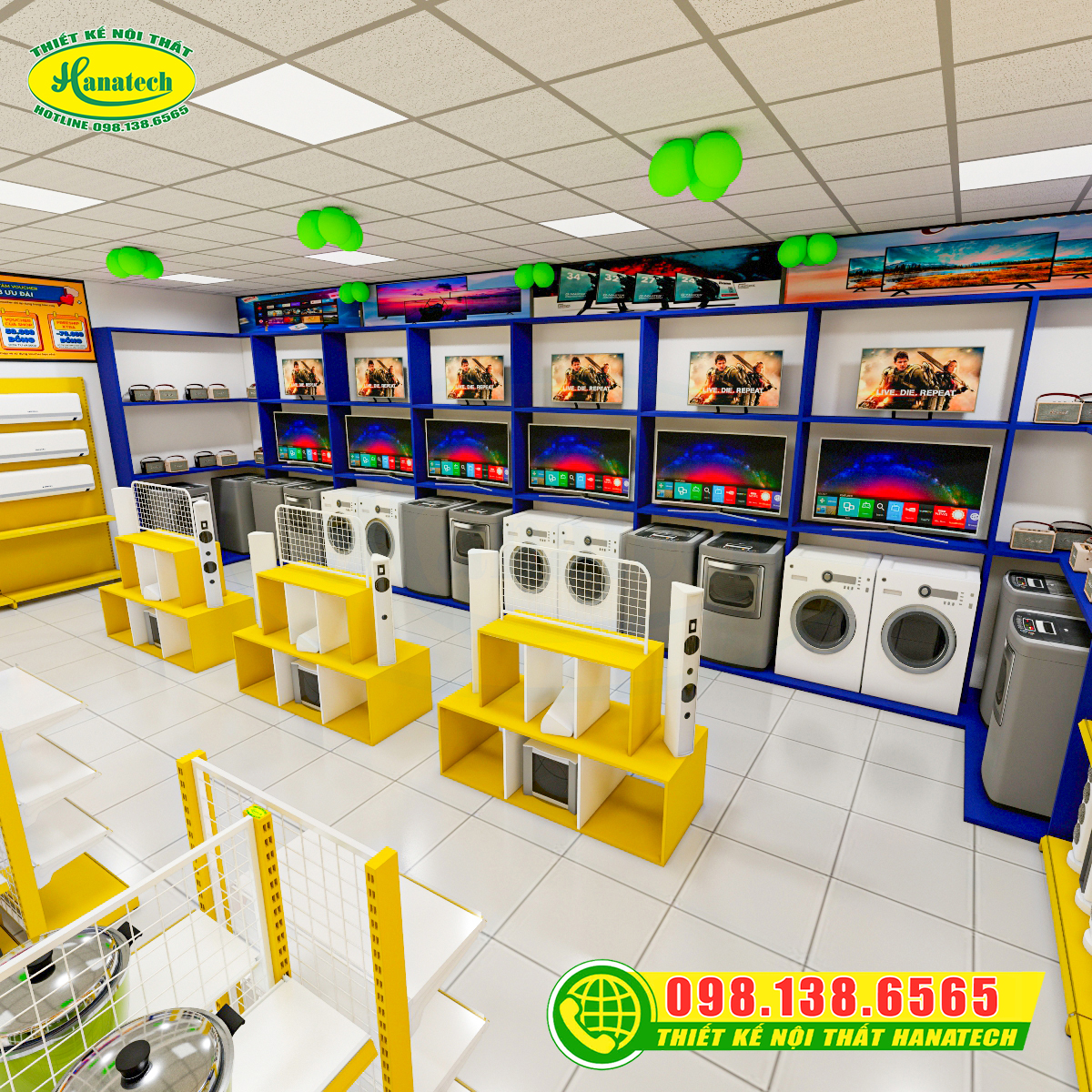 Dưới đây là hình ảnh thực tế mô hình cửa hàng điện máy do Hanatech thiết kế, quý khách nên xem qua: